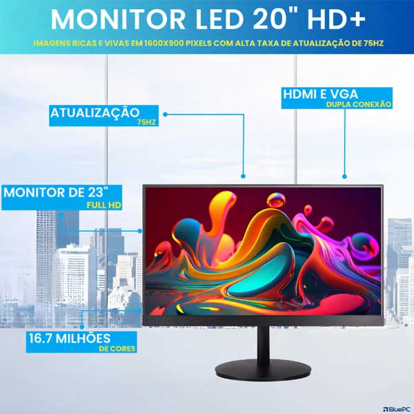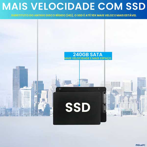 ::: Computador Completo Office Fácil Intel Core I5 4570 4ª Geração 16gb Ram 240gb Ssd Monitor 20″ 75hz Hdmi Windows 10 Pro Trial BluePC CDF-099OF :::