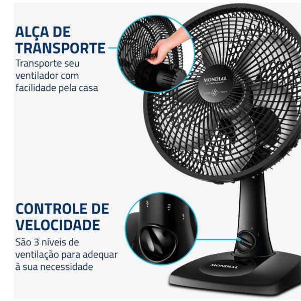 Ventilador de Mesa 30cm Super Power Mondial 60W VSP-30-B