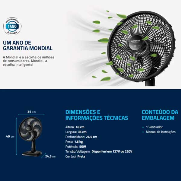 MAIS SILÊNCIO E CONFORTO O sistema de ventilação da Mondial apresenta baixo nível de ruído, assegurando o silêncio necessário para momentos de concentração e uma excelente noite de sono.